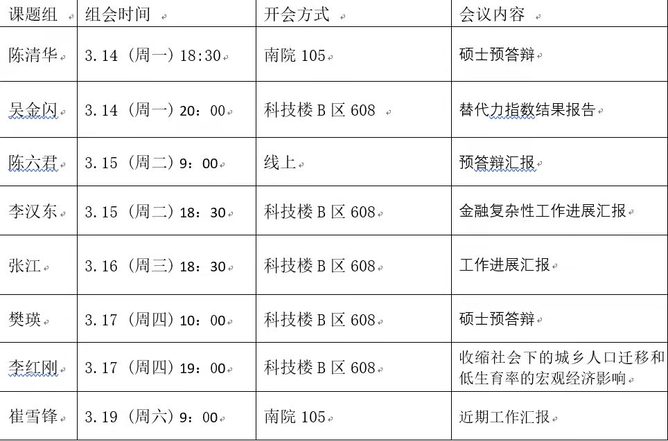 本周组会汇总信息如下: