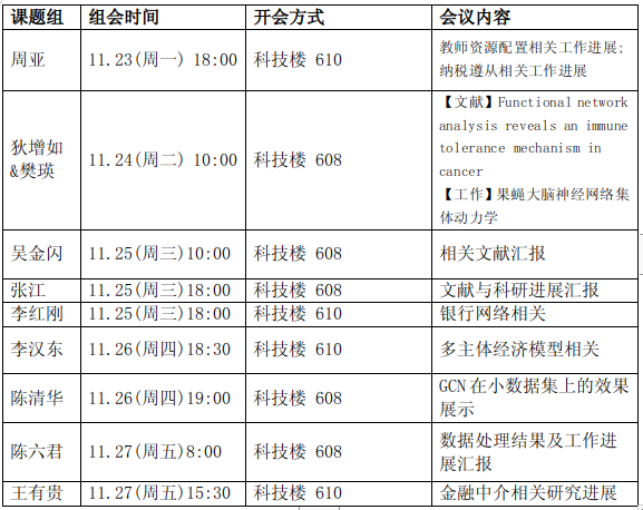 下周组会汇总信息如下: