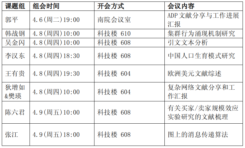 部分组会时间未确定,请感兴趣的同学加入开放组会交流QQ群,群号为 :790729133,及时跟进相关信息!