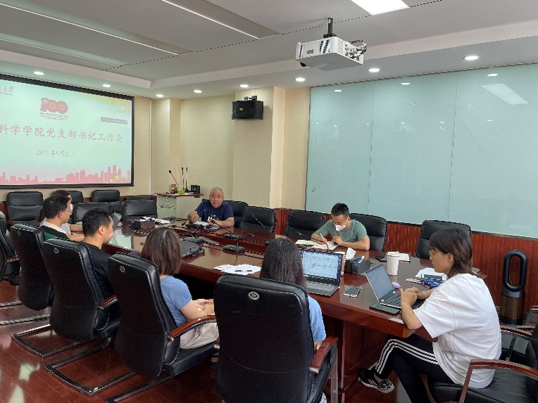 2021年9月2日下午,学院在科技楼B区608召开新学期党支部书记工作会议。会议由周亚老师主持,全体师生党支部书记参会,总支组织委员李小萌老师、秘书王梦琦老师、以及学生党建组织员、宣传员应邀参会。