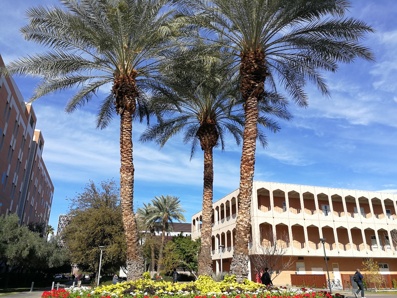 经过2天的短期痛苦的倒时差环节,同学们终于要“上学啦”!在第一天,老师和同学们与亚利桑那州立大学方面的联系人Sander教授进行了会面,Sander教授极其热情,并且帮助同学们联系了各自研究领域的专家,来帮助大家在科研方面获得更好的提升。同时,同学们还专门拜访了来颖诚教授,在此次访学中,来老师不仅为同学讲授课程,而且为同学们提供了实验室的座位。