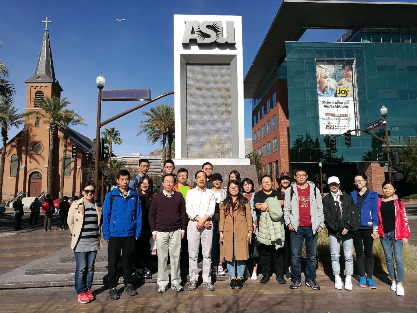 与来老师共进午餐之后在ASU标志下的合影