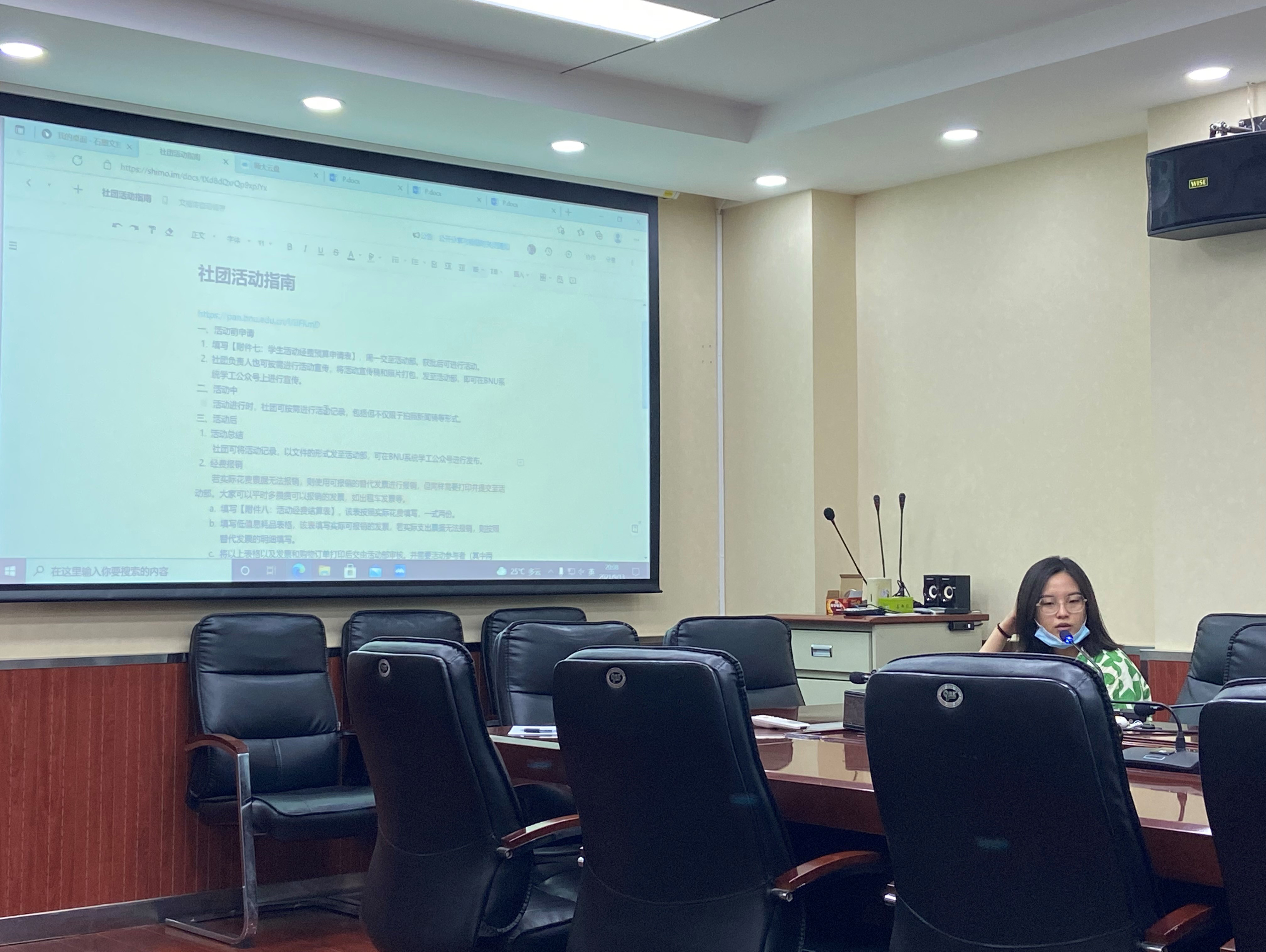 首先,由活动部副主席骆慧颖概述此次会议的主要内容。经学生工作执委会讨论,新学期对于社团管理制度上进行了优化,除了在学期初召开社团负责人工作例会外,决定每学期期末召开工作总结会,对于本学期社团活动进行总结汇报,及时总结问题,提高社团质量,增强社团管理能力。其次,为加强新学期社团管理工作,需要各学生社团负责人于9月20日前提交新学期注册申请,对于有换届需求的社团,及时交接相关工作。并对活动的申请以及报销流程进行了说明。
