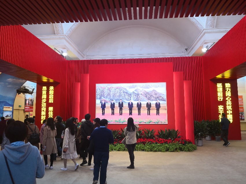 展览中主要呈现出三个主题:一是突出坚持党的领导,在展览中,专门设置了“历次党的代表大会及重要中央全会的重大决策部署”、“历次五年规划(计划)时期经济社会发展取得的成就”等方面的跨段主线,通过全方位展示这些重大历史事件和成就,充分展现全党全国各族人民在以习近平同志为核心的党中央领导下,实现两个百年奋斗目标的豪迈气概和美好愿景。