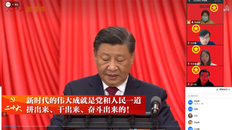 两位班长带领同学们一起认真学习二十大报告,深刻领会党的战略安排和国家的发展规划。习总书记说到:“中国共产党已走过百年奋斗历程。我们党立志于中华民族千秋伟业,致力于人类和平与发展崇高事业,责任无比重大,使命无上光荣。全党同志务必不忘初心、牢记使命,务必谦虚谨慎、艰苦奋斗,务必敢于斗争、善于斗争,坚定历史自信,增强历史主动,谱写新时代中国特色社会主义更加绚丽的华章。”,我们党和国家走过了艰苦的奋斗历程,取得了伟大成就,现在党将带领国家,为实现中华民族伟大复兴继续艰苦奋斗。