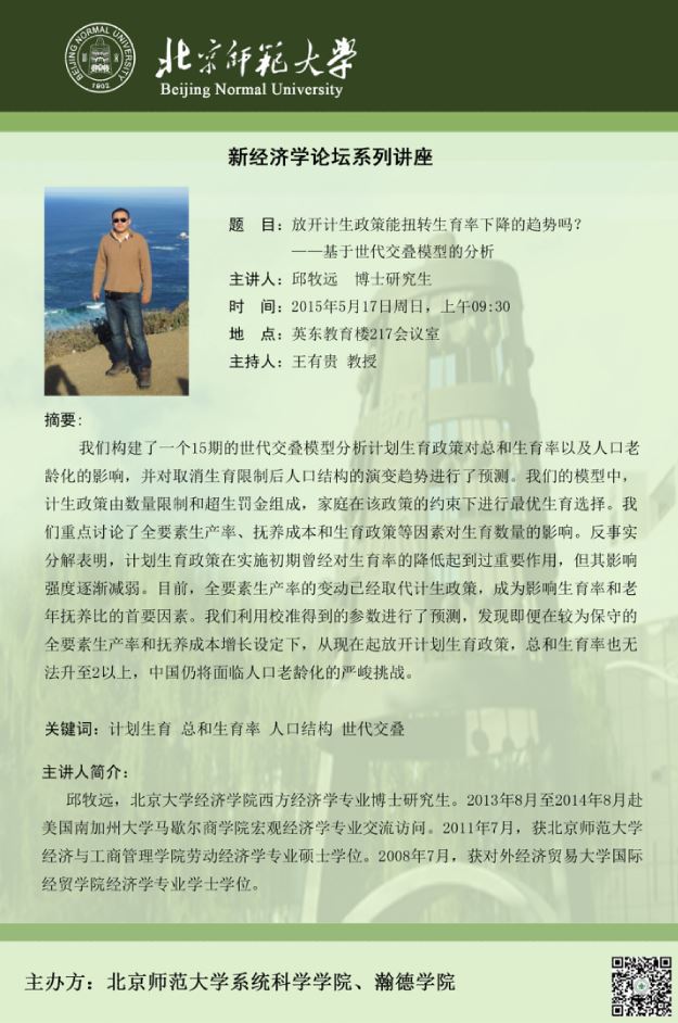 [讲座] 放开计生政策能扭转生育率下降的趋势吗