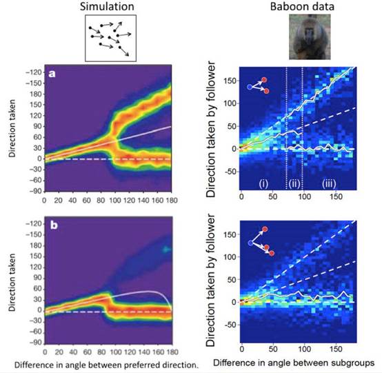 图2:左边为2005年发表在Nature上理论模拟的结果,右图为2015年发表在Science上依据狒狒实际实验数据的结果。