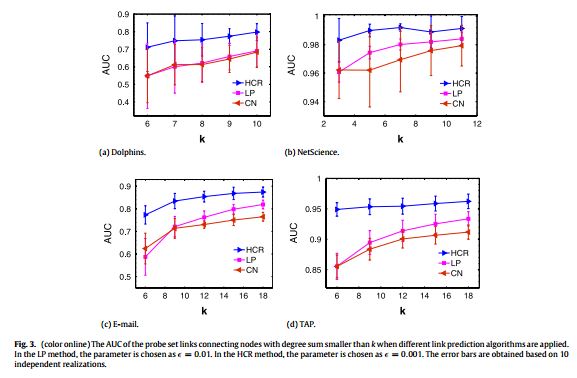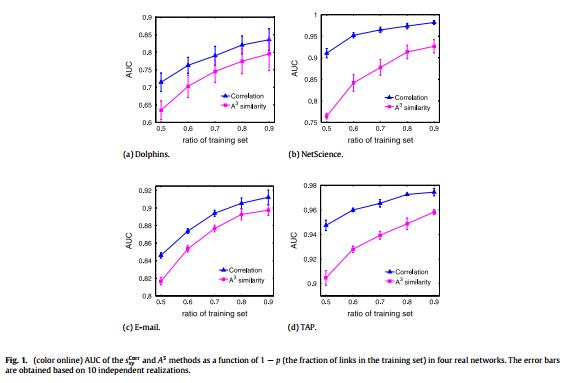 简介:链路预测是复杂网络研究中的一个热门问题。现有大部分链路预测算法都是通过对网络中节点相似程度的估算来实现连边预测,其基本思想是假设相似的节点之间更有可能在未来存在连边。与已有工作不同,本文提出可以通过皮尔逊相关系数来对于节点相似程度进行估算。结果显示,这种方法能有效去除高阶路径中的噪音信息,因此在稀疏网络上能达到较高的链路预测精度。