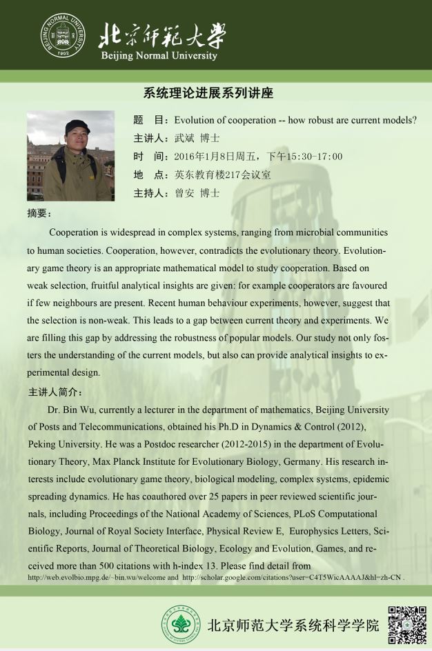 [讲座] Evolution of cooperation -- how robust are current models?