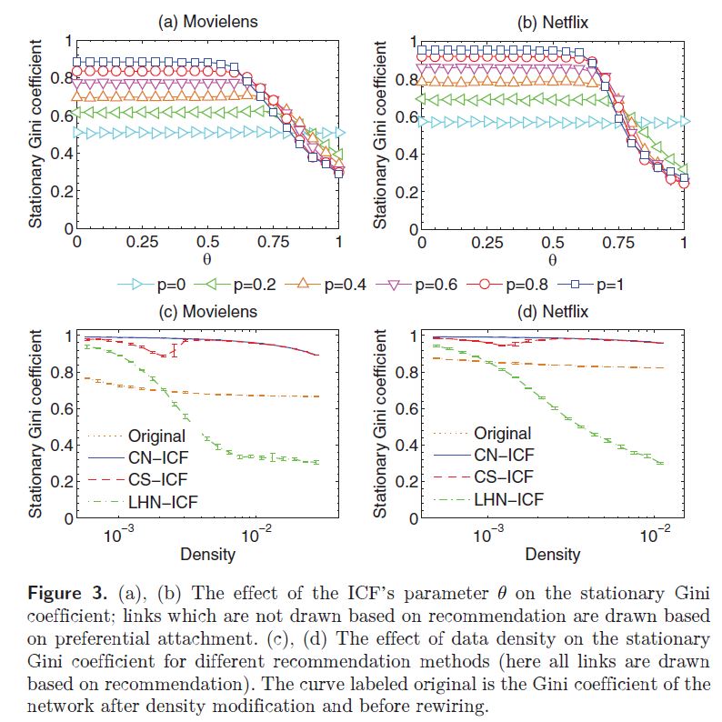 内容简介:我们在各种网站上常常接触并使用推荐系统。在我们享受它带来的便捷时,它也在潜移默化的影响着我们的选择习惯。前人对推荐系统的研究主要集中在如何提高推荐系统的精确性和多样性,而不同推荐系统在长期使用下会对商品形成如何的关注度分布尚不清楚。本文提出了一个基于用户-商品二分网的演化模型来研究推荐系统对用户选择行为的长期影响。虽然大家广泛认为推荐系统能为用户拓宽视野,结果显示在长期演化中用户的选择范围被推荐系统大大缩小。另外,本文还发现此模型能涌现出迟滞现象,使得推荐系统的这种不利效果很难通过自身恢复。最终,我们发现在演化早期牺牲推荐系统的少量推荐精度可以有效减弱它产生的这种长期不利影响。