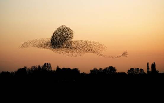 图1 Flocking birds can synchronize to make patterns.