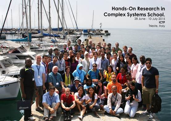 日韩av2013级博士生姜立于2015年6月27日至2015年7月12日访问ICTP,参加该中心举办的复杂系统研究暑期学校(Hands-On Research in Complex Systems School, smr 2752)。该暑期学校从2008年开始每年举办一次,旨在给青年科学家提供实验技术和计算建模等方面的训练。今年的讲座由美国科学院院士Harry L. Swinney等人主讲。访问期间,姜立同学张贴了题为“Obstacle Optimization for Increasing Panic Pedestrians Escape Speed”的海报,介绍了我们在行人疏散方面的工作。