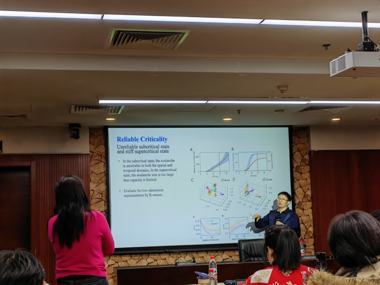 本次学术报告深入系统探讨了兴奋-抑制平衡网络中通过调控兴奋性和抑制性神经元的活动达到临界雪崩现象,使得神经系统在灵敏性和可靠性之间达到平衡,为理解神经临界性提供了新的理论支持。周昌松教授精彩的报告引发了与会师生的广泛关注和热烈讨论,讲座结束后,老师和学生们积极提问,进一步促进了学术交流和思想碰撞,也为脑科学与系统科学的交叉研究提供了更多启发。
