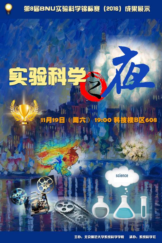每年一度的BNU实验科学锦标赛已经接近最热烈的时段,11月19日(周六)晚19:00、11月20日(周日)晚19:00及11月21日(周一)晚19:00在日韩av 科技楼B区608分别进行实验科学之夜、竞赛最后答辩评审和颁奖典礼。欢迎各位同学老师参加。
