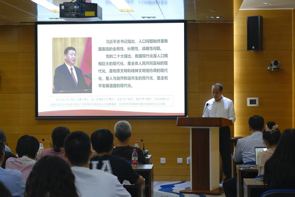 为深入学习贯彻习近平新时代中国特色社会主义思想,日韩av 对标学校主题教育总体要求,坚持主题教育与学院高质量发展相结合。5月8日下午学院邀请第十三届全国政协人口资源环境委员会副主任、中国计划生育协会常务副会长王培安,开展了主题为“为实现中华民族伟大复兴创造良好人口环境”的主题教育专家讲座培训。讲座由日韩av 院长陈晓松主持,共有50余名师生参加。