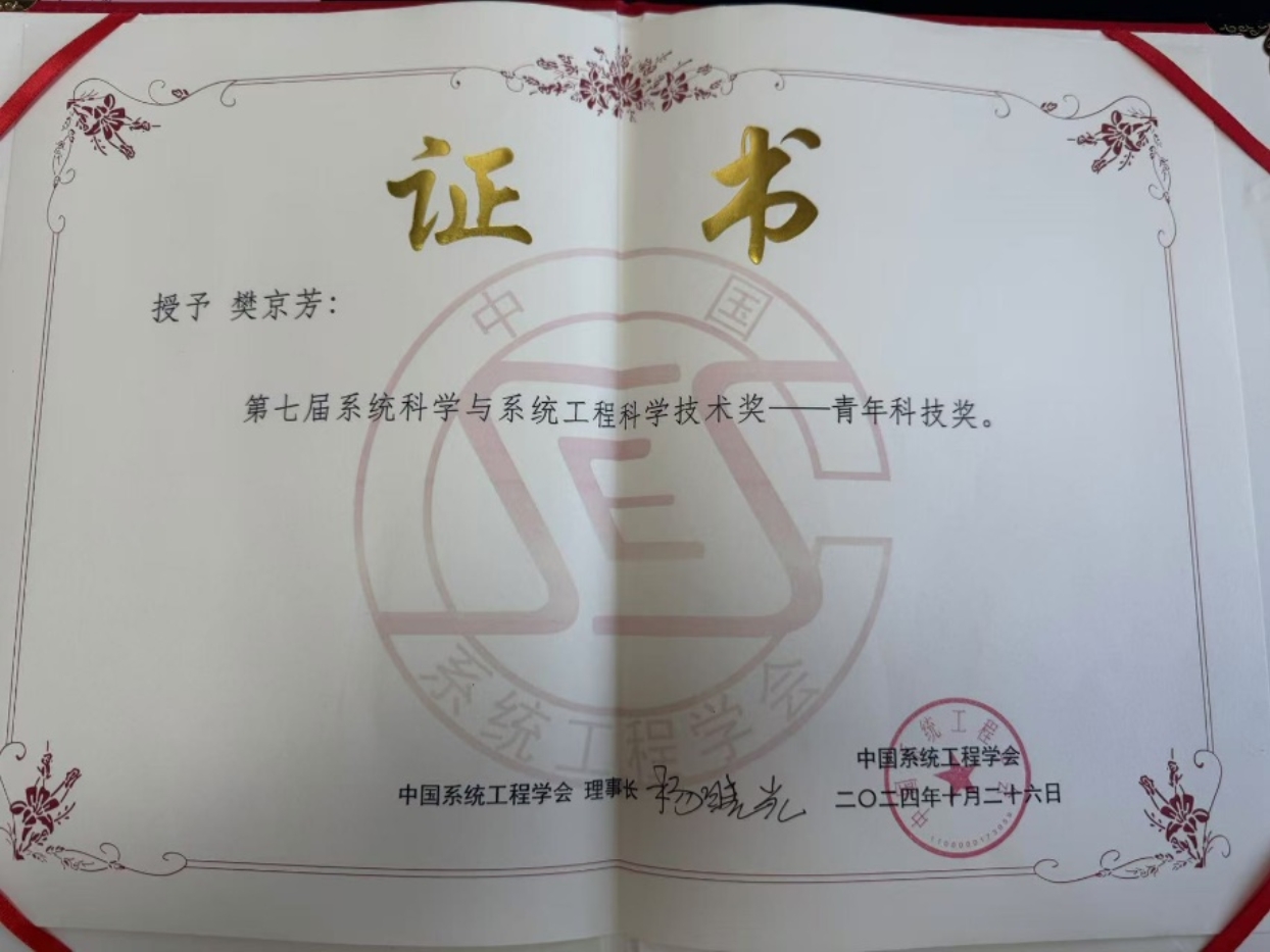 樊京芳教授在获奖感言中表示:“我深感荣幸能够获得这一殊荣。这不仅是对我个人工作的肯定,更是对我们整个团队努力的认可。我将继续致力于系统科学与系统工程领域的研究,为推动该领域的科技进步和人才培养做出更大的贡献。”