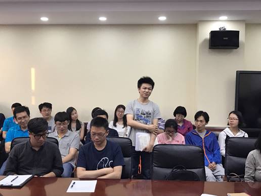 大会开始之后,首先全体起立,唱国际歌。然后根据接受预备党员会议流程,李志成同志朗读入党志愿书,表明自己加入中国共产党的决心。支部大会讨论过程中,其入党介绍人马玉财同志、龚力同志分别介绍了李志成同志在日常学习和生活中的表现,以及存在的优缺点,表明该同学符合一名中国共产党党员标准;随后支委会报告了对发展对象的审查情况;与会党员发表意见的过程中,吴珺同志和刘奥强同志更加具体地介绍了李志成同志在学习、生活中的表现,认为李志成同志具有做事认真负责、乐于助人、为人诚恳等优秀品质,同时也提出了宝贵建议,希望李志成同志在今后的学习生活中能够做得更好。随后正式党员投票表决,最终组织委员刘艳老师宣布支部决议,李志成同志正式成为预备党员。