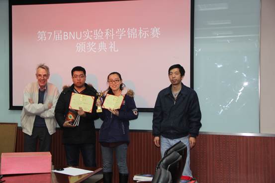 2015年11月17日,在北师大英东教育楼217会议室,伴随着热烈的掌声,第7届BNU实验科学锦标赛落下帷幕。日韩av 副院长韩战钢老师在会上作了致词,他对大家的热情参与表示感谢,对同学们的研究精神表示称赞,并对大家取得的成绩表示祝贺。然后,会议组织者——来自法国巴黎第七大学Bertrand Roehner教授和日韩av 陈清华副教授给大家进行了颁奖。