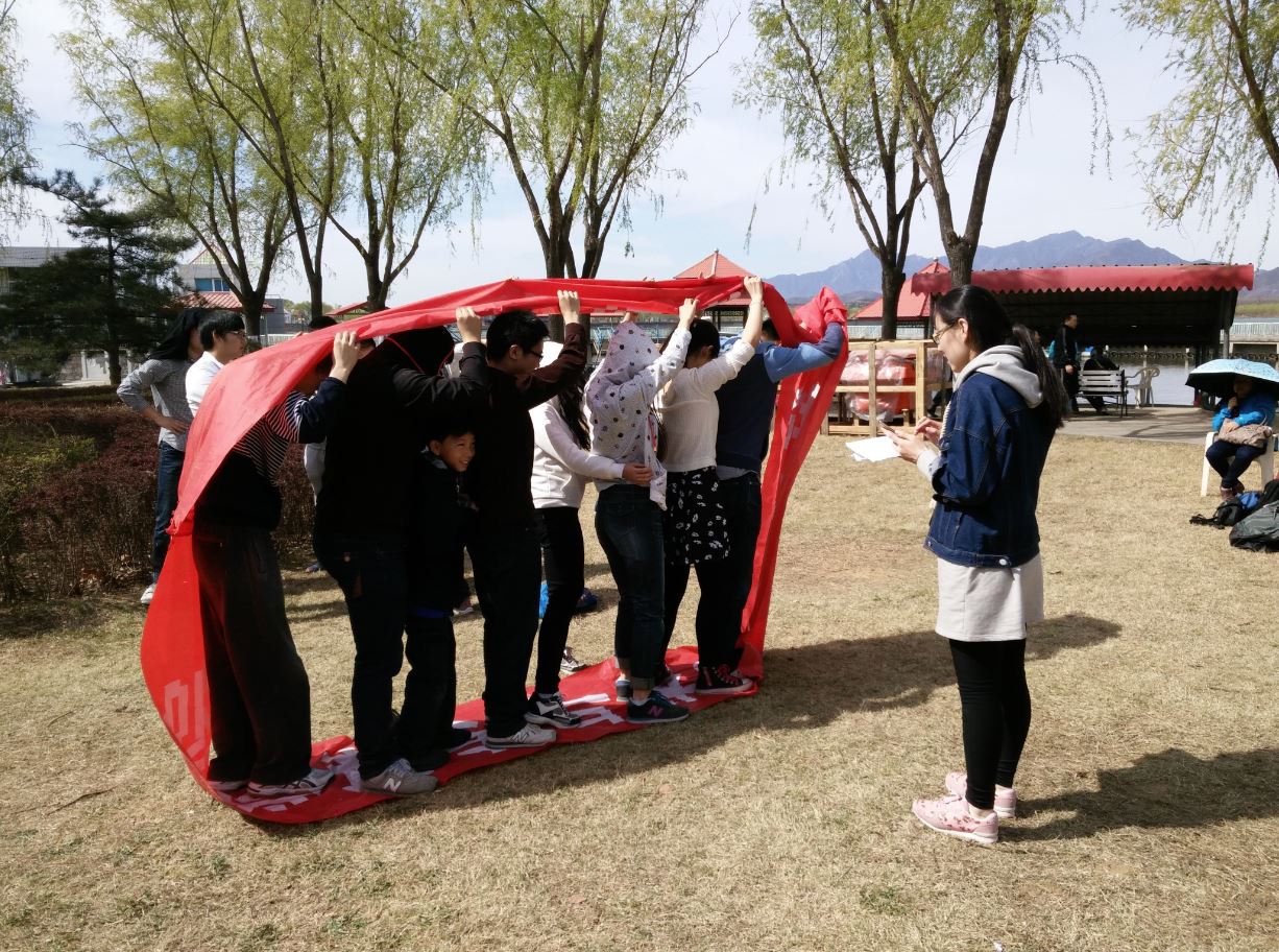 在大家找到了合适的场地之后,由团总支组织的室外素质拓展活动拉开了序幕。首先大家随机分成三组,进行了热身活动,接着以小组为单位,进行了超音速、生日排序、坦克部队、活动解手环等素质拓展项目。活动中大家热情高涨,精诚团结,为了小组的荣誉积极献计献策。本次活动使同学们紧张的学习生活得到调节放松,同时增强了大家的团队意识、锻炼了同学们的合作能力,使大家明白了团队精神的重要性,只有培养全体成员的向心力、凝聚力,才可以通过合适的组织形态将每个人安排至合适的岗位,充分发挥集体的潜能。