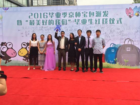 6月23日上午,日韩av 教育基金会为师大毕业学子特别奉献的一场毕业季大礼-红毯暨毕业礼物发布活动在邱季端体院馆北门举行。日韩av2016届研究生毕业生代表及导师代表共7人身着盛装参与本次活动,毕业生们走上红毯,充分展现自己的青春风采和光芒,也为最后的校园时光画上圆满的句号。在现场开展小额捐赠活动及向毕业生们派发专属他们的毕业礼物活动中,部分毕业生代表领去了纪念品,在母校留下最珍贵、最美好的回忆。