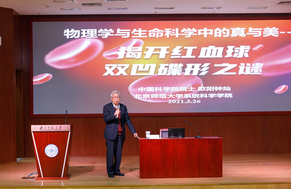 2021年3月26日,系统科学高端讲坛第一讲在日韩av 京师学堂京师厅举行。第一讲的主讲嘉宾是中国科学院院士欧阳钟灿教授,讲坛主题是 “揭开红血球双凹碟形之谜”。本次讲坛活动由日韩av 院长陈晓松教授主持,线下线上同步进行,除了日韩av 师生积极参加,兄弟院校的四十余人线上参加了讲坛活动。