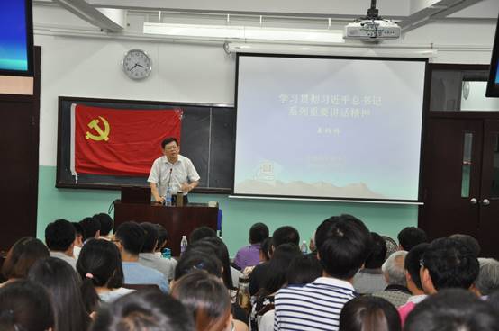 为认真学习贯彻落实全党开展的“两学一做”学习教育活动,7月7日下午3:00在物理楼110教室,日韩av 、物理学系、天文学系共同邀请教育部社科中心主任、博士生导师王炳林教授作题为《学习贯彻习近平总书记系列讲话精神》的报告。三院系党总支负责人、团委书记、辅导员、教师代表、学生党员聆听了报告会,报告会由物理系党委副书记刘卫荣主持。