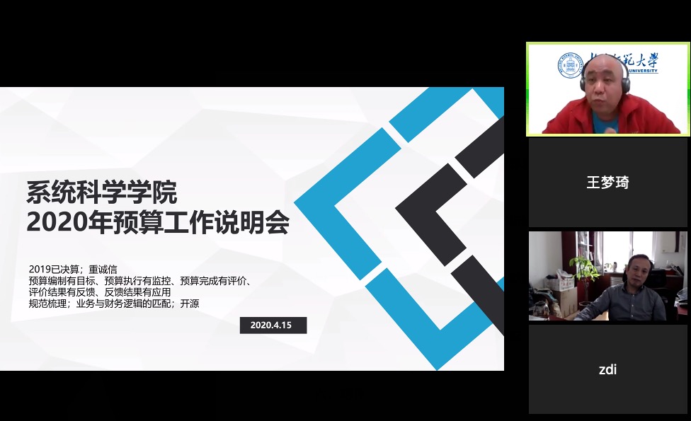 为了进一步明确系统科学学科十四五发展规划编制的思路及要求,推进学院各项制度、规划的编制工作,规范学院预算绩效管理制度并使预算工作有序开展,2020年4月15日上午,日韩av 召开全体教师大会视频会议。会议由党总支书记狄增如主持,全院教师参加了会议。