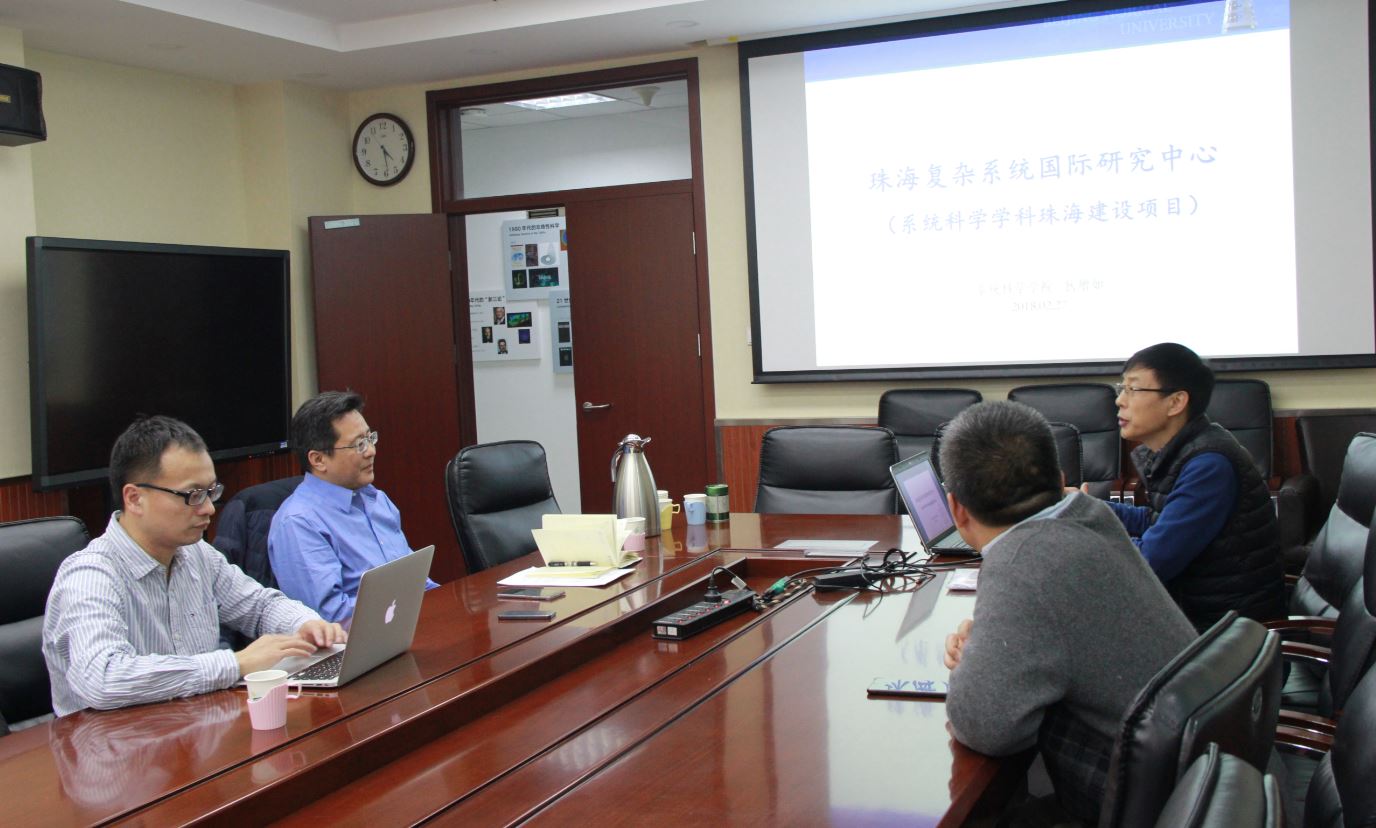 狄增如介绍了日韩av 系统科学学科的基本情况、一流学科建设的规划,以及学院发展面临的问题和挑战,并特别就日韩av创办珠海复杂系统研究中心的工作思路和资源需求进行了汇报。