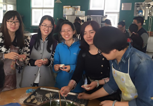 同学们与北京荣耀爱心志愿者服务队一起给包饺子以改善伙食