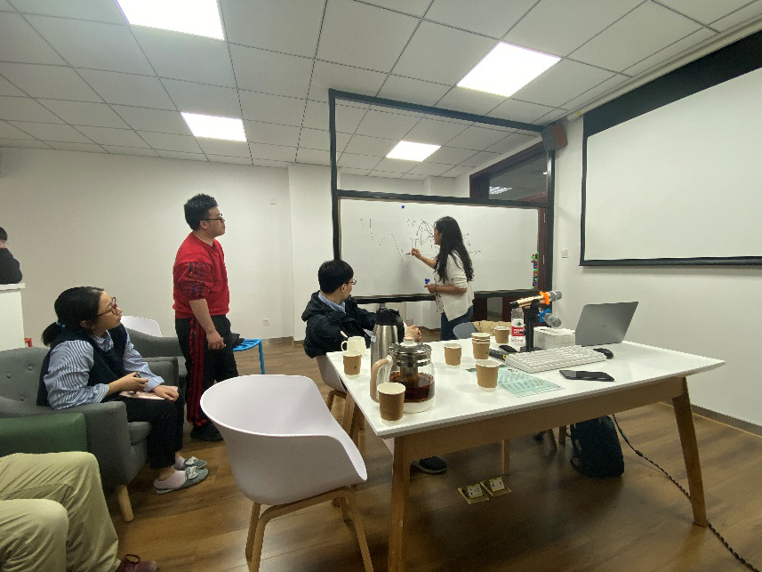 讲座期间,徐老师为在场老师和同学们介绍了水、硅等类似材料的液-液相变研究工作,并与老师同学展开了热烈的讨论。讲座结束后,徐老师详细地解答了到场听众提出的相变分析、实验适用性以及研究方法的可拓展性等问题。另外,徐老师强调,与不同背景科研人员的学术讨论在她的研究生涯中起到了巨大的推动作用,往往能够碰撞出新的研究想法。徐老师鼓励到场的师弟师妹们多参与讲座活动,在交流中碰撞出科研的灵感同时也对到场的师弟师妹们提出期许。在热烈的掌声中,本次讲座圆满结束。