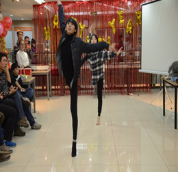 随着蛋糕的分发,晚会节目开始上演。小萌老师携儿子为大家带来的《水果拳》生动活泼,张江老师携家人为大家表演,献上吉他弹唱《Silent Day》,奠定了晚会欢快愉悦的氛围,接下来的抽奖环节迎来了晚会的第一个小高潮。马玉财和王翔宇为大家带来相声《单身男女》,为广大单身男女上了一节生动形象的恋爱课程,朵朵小朋友的钢琴独奏《菊次郎的夏天》非常美妙。伴着第二次的抽奖环节,游戏环节《你演我猜》带来了晚会的第二个小高潮,学院师生同心协力做游戏,欢聚一堂,场面热闹欢快,欢声笑语不绝于耳。下面的节目是文雷与她的小伙伴金磊带来的舞蹈《天黑请闭眼》,舞蹈赢得了大家一致的喝彩,喝彩声,欢呼声是对这一视觉盛宴的极大赞赏。焦奕霖和李时嘉的相声迎来一片欢声笑语,楼晓丹等人的歌曲《我的未来不是梦》迎来了全场的大合唱,连连抽出的大奖,为我们的晚会画上了圆满的句号。