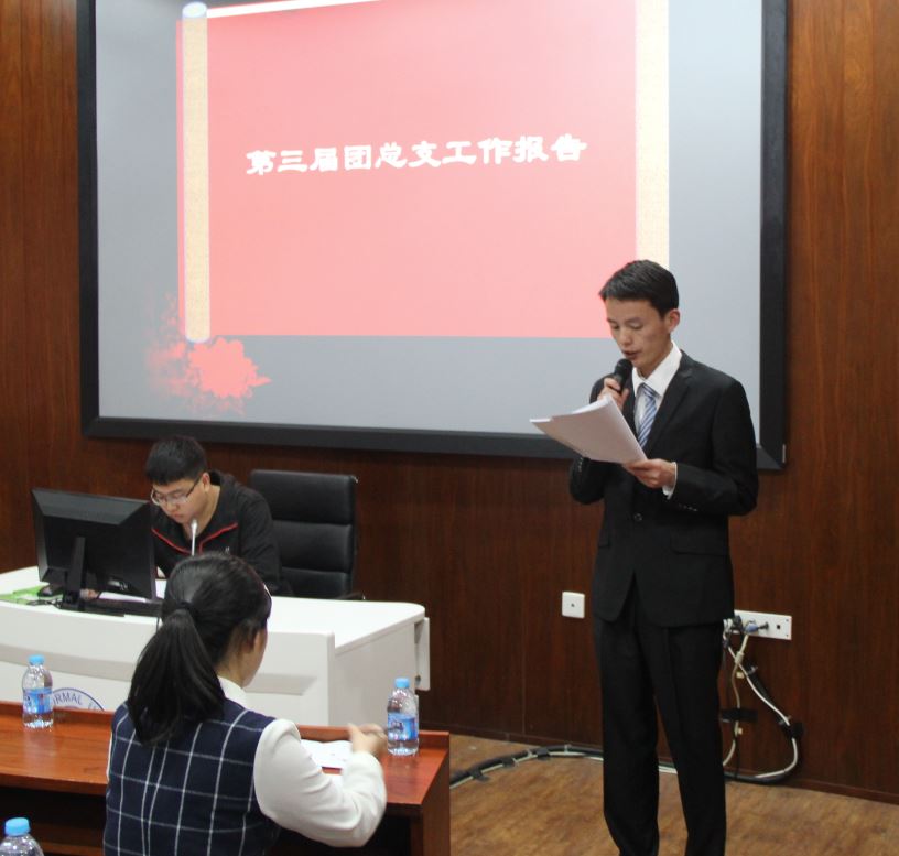 李小萌老师代表大会筹备委员会作了工作汇报,介绍了本次会议的筹备历程、各年级代表的推选情况以及候选人的资格审核结果。随后,学院团总支书记曾凡齐同学和研究生会主席徐翊焜同学分别代表第三届团总支委员会和研究生会主席团做一年的工作总结,他们在报告中回顾了第三届团总支和研究生会班子成立以来开展的各项工作。经过一年的努力,日韩av学生组织在制度建设、活动开展、服务师生等方面取得了良好的成绩,在秉承日韩av学生工作的优良传统的基础上,创新了活动形式,结合学科特色努力为全院师生特色营造良好的学术氛围,也为普及、宣传系统科学贡献了自己的一份力量。接着,余柳涛同学代表师生文体联谊会做工作报告,他回顾了一年来学院师生文体联谊会下设的“羽毛球社”、“足球社”、“电影社”和“棋牌社”开展的各项文体活动,总结了目前工作中的困难和不足,也向各位代表汇报了未来工作计划。