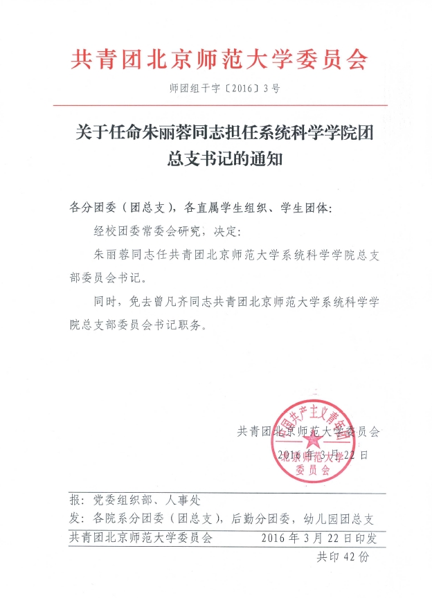 关于任命朱丽蓉同志担任日韩av 团总支书记的通知