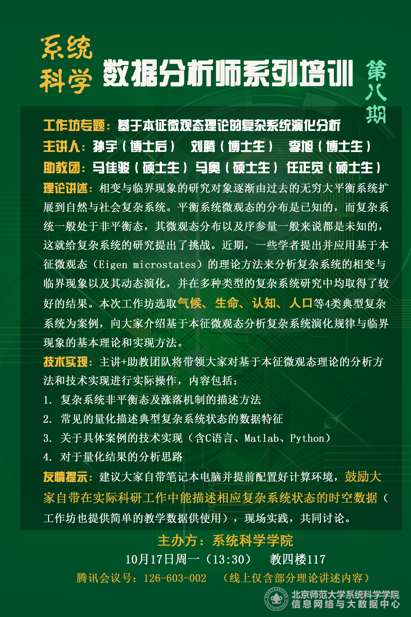 【讲座】基于本征微观态理论的复杂系统演化分析