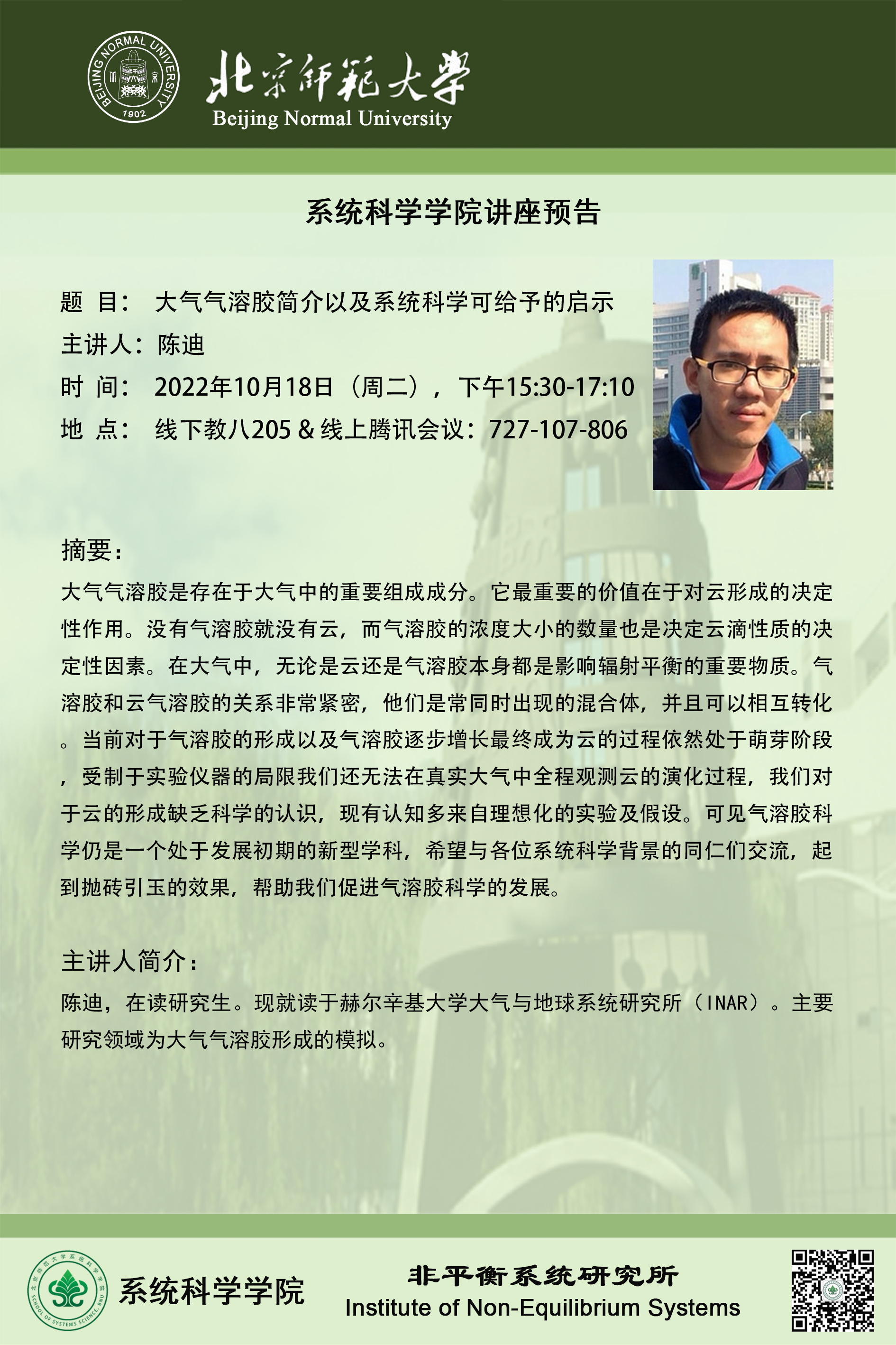 【讲座】大气气溶胶简介以及系统科学可给予的启示