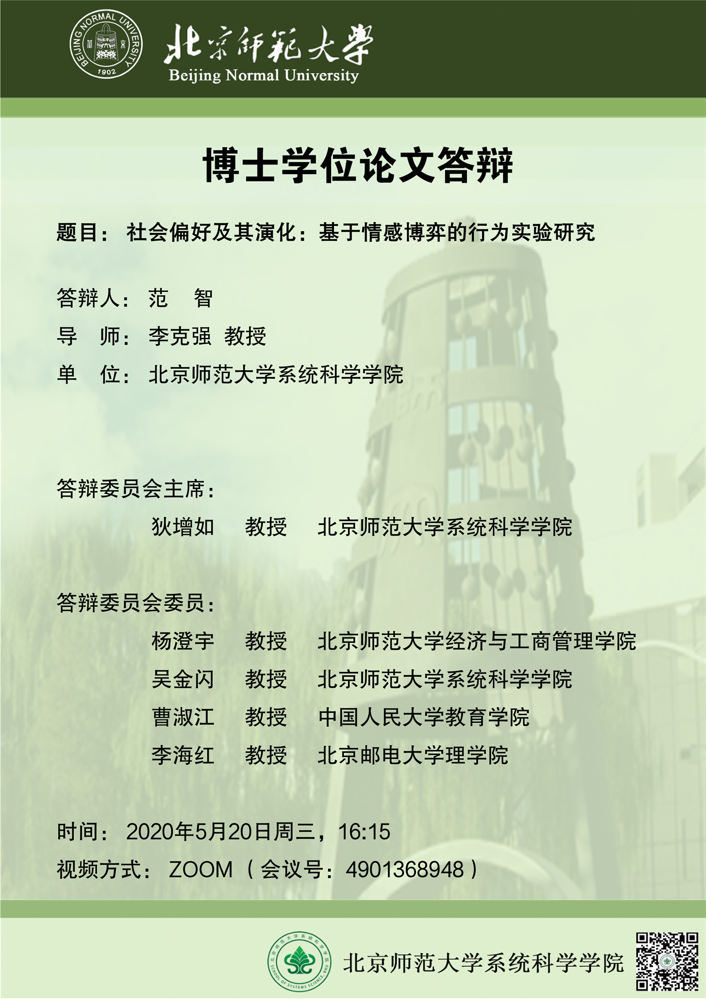 【答辩】社会偏好及其演化:基于情感博弈的行为实验研究