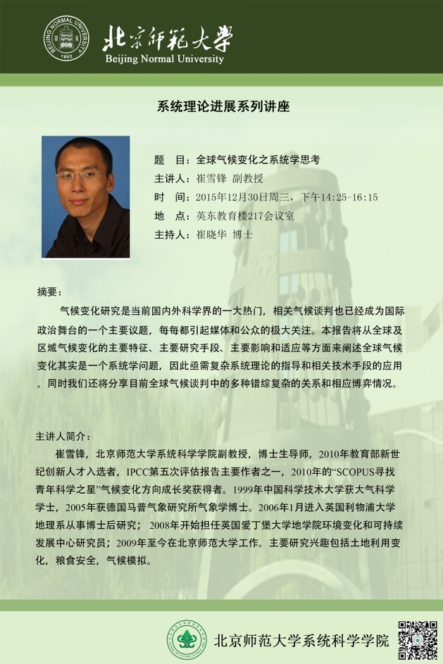 [讲座] 全球气候变化之系统学思考