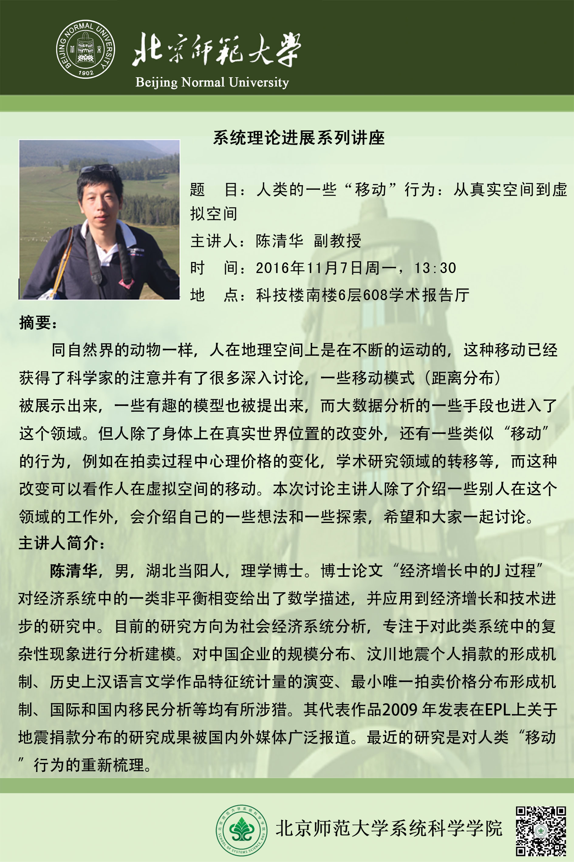 [讲座] 人类的一些“移动”行为:从真实空间到虚拟空间