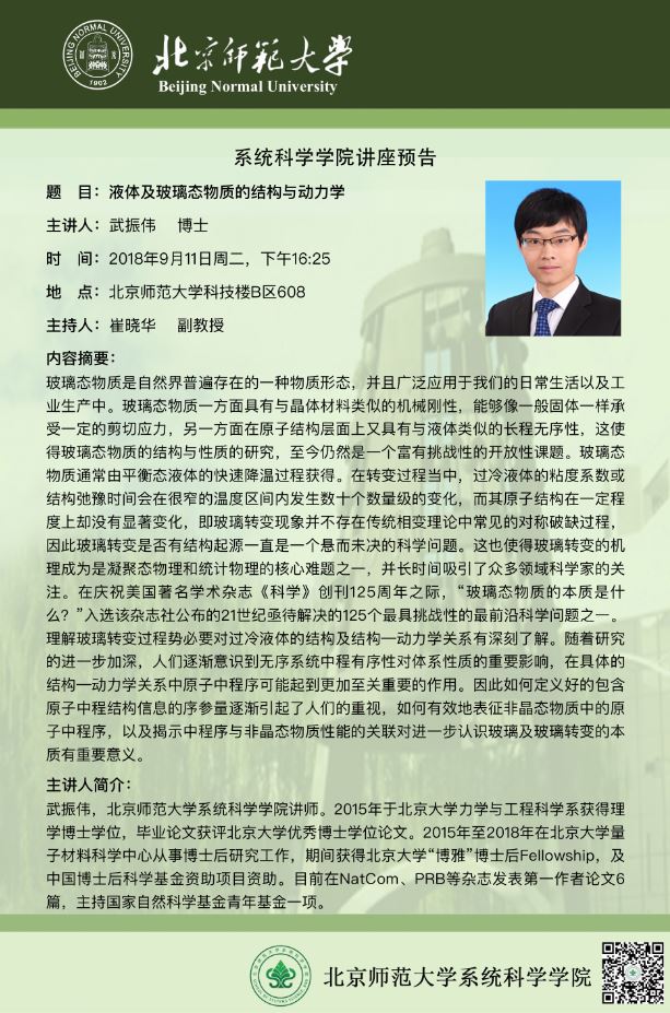 [讲座] 液态及玻璃态物质的结构与动力学