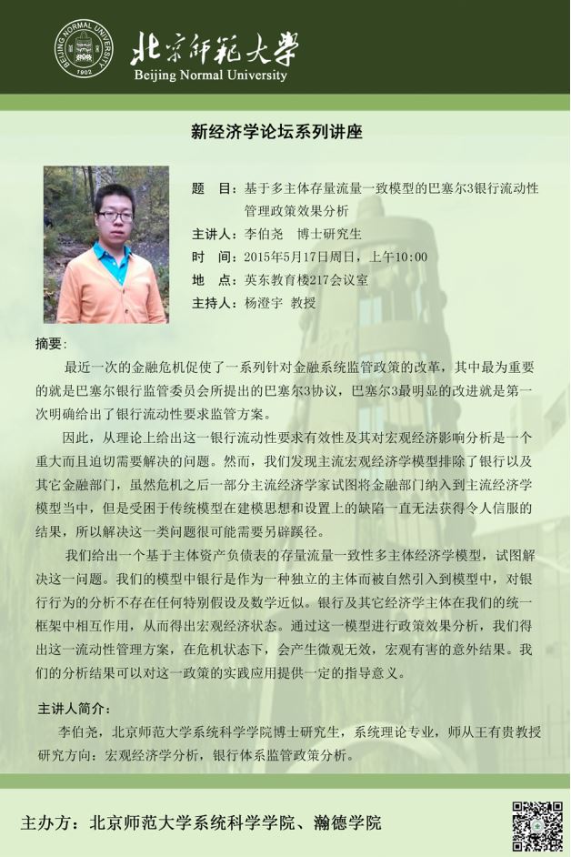 [讲座] 基于多主体存量流量一致模型的巴塞尔3银行流动性管理政策效果分析