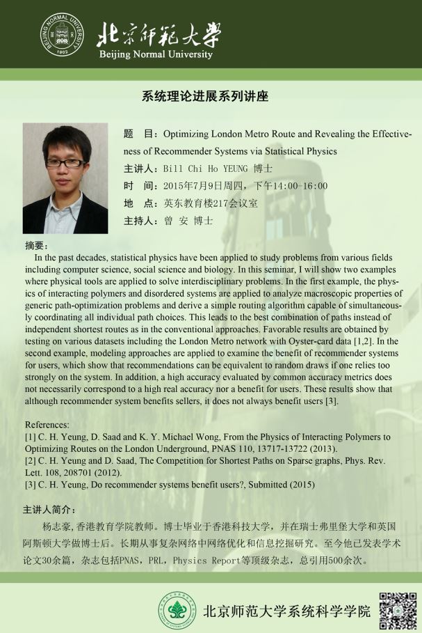 [讲座]Optimizing London Metro Route and Revealing the Effectiveness of Recommender Systems via Statistical Physics
