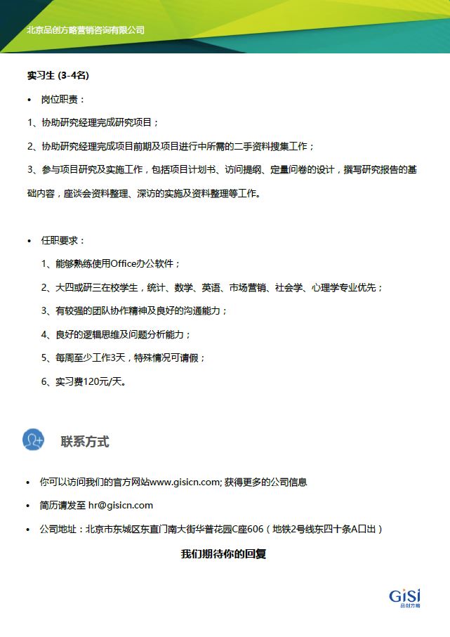 [院友单位] 北京品创方略营销咨询有限公司(实习+全职)