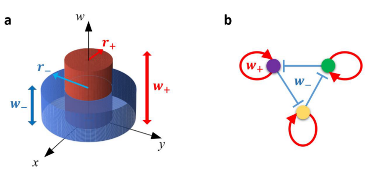 这里的正负力可以代表复杂系统各种层次上的基本相互作用,包括四种基本力、分子生物的正负调控作用、神经元的兴奋和抑制作用、动物捕食和共生关系、社会吸引和排斥作用、合作和对抗、阴和阳等;对称破缺可以自发出现在物理和化学系统之中,也可通过未知的方式编码到基因中,并进一步体现在分子调控、神经系统和生物群体行为之中。