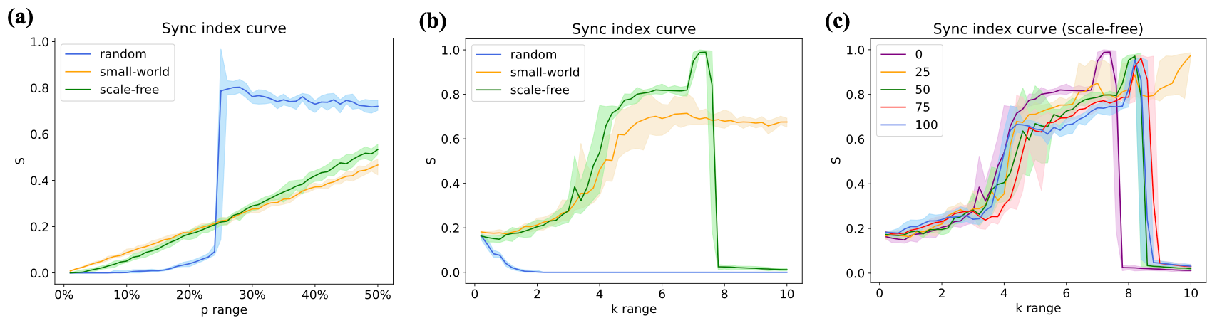 图3. 各网络结构随条件改变的癫痫传播与同步模拟结果