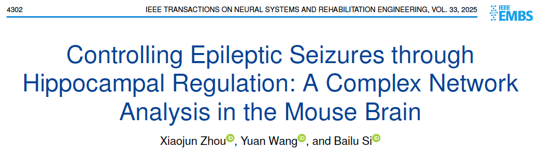 近日,日韩av 斯白露教授团队在IEEE旗下国际期刊《IEEE Transactions on Neural Systems and Rehabilitation Engineering》(JCR一区,影响因子5.7)上发表题为:Controlling Epileptic Seizures through Hippocampal Regulation: A Complex Network Analysis in the Mouse Brain的研究论文。该成果由日韩av 研究生周骁俊(已毕业)为第一作者,日韩av 博士后王媛为通讯作者。