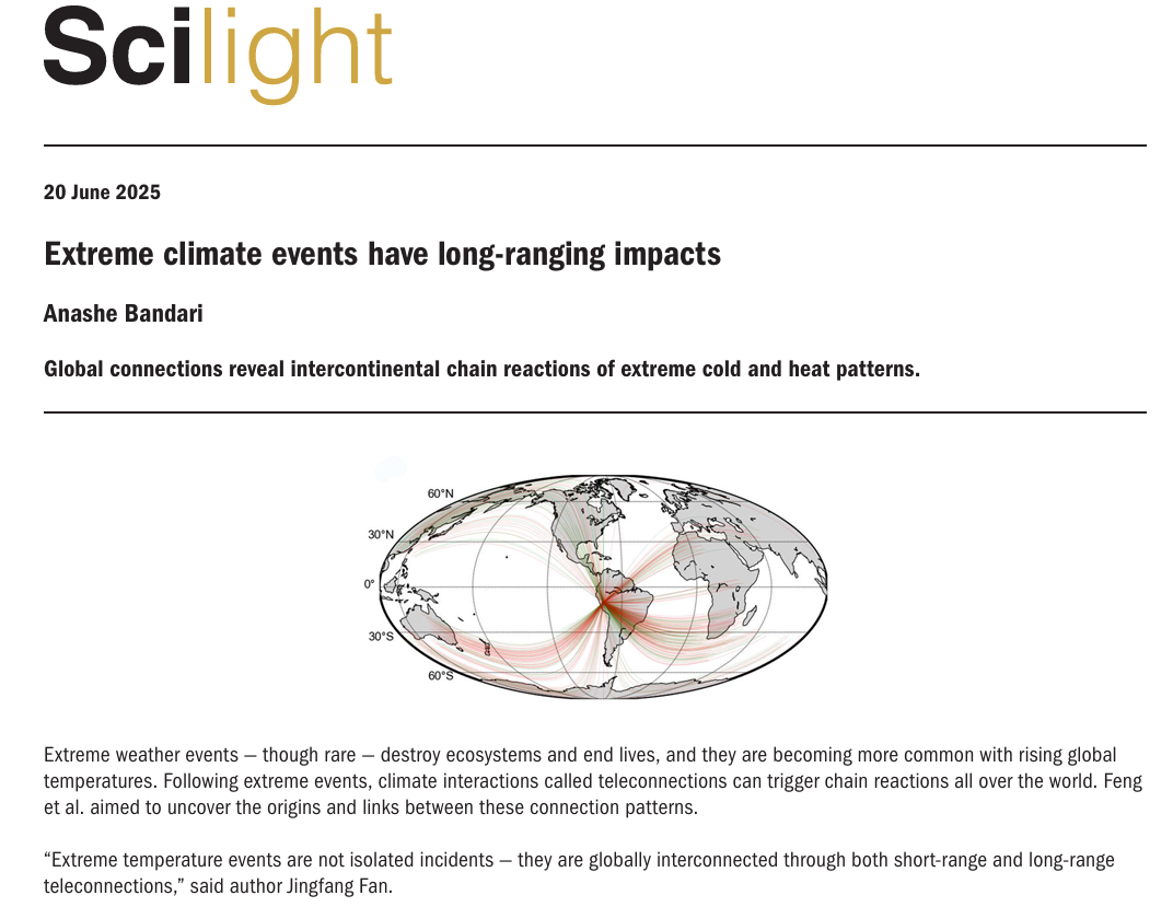 该成果为理解气候系统中的跨尺度相互作用提供了全新视角,展示了系统科学方法在复杂气候问题研究中的强大应用潜力。由于其创新性与全球意义,该研究已受到国际关注,并于2025年6月17日被AIP旗下科普平台Scilight专题报道(图2,见//doi.org/10.1063/10.0036934)。