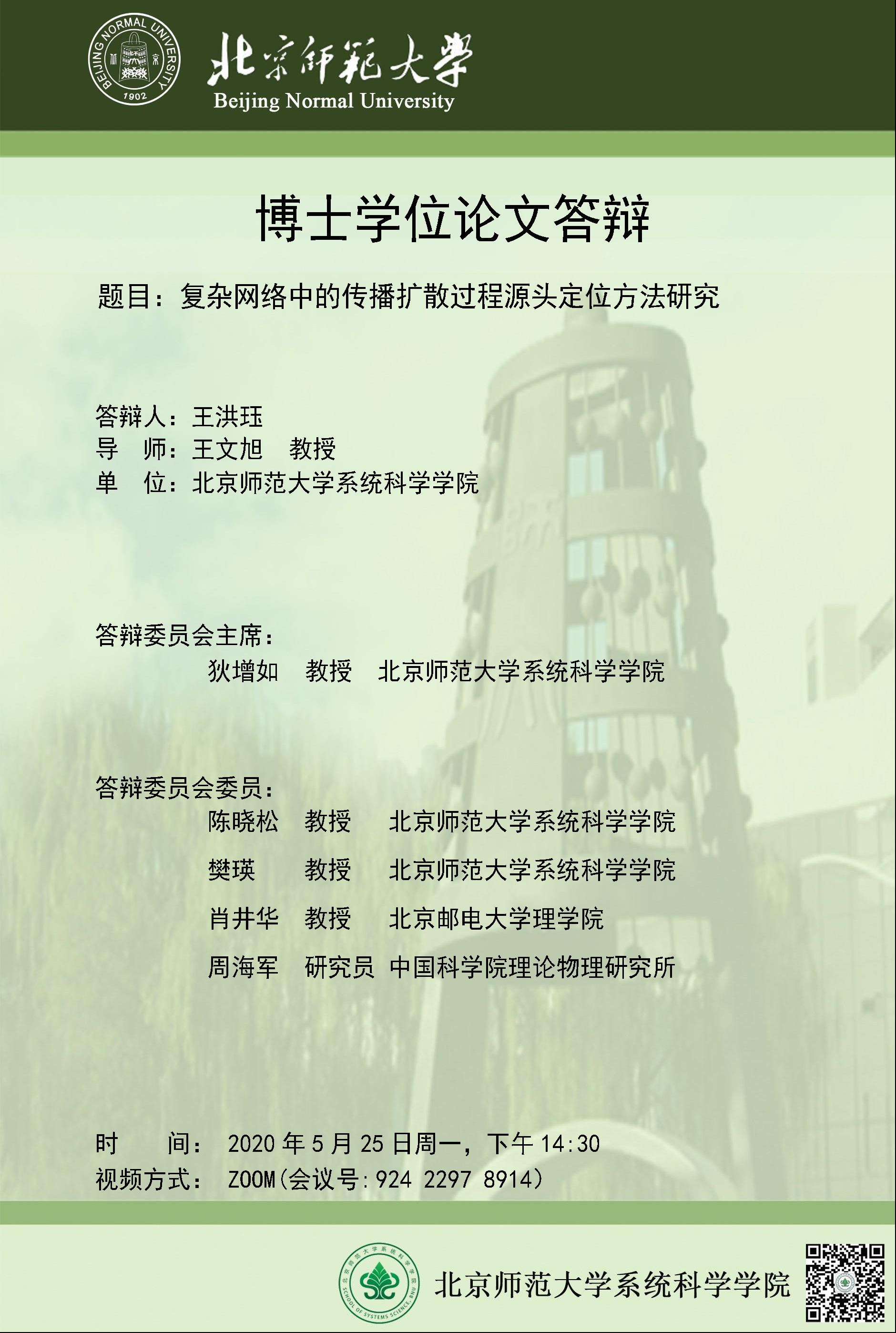 【答辩】复杂网络中的传播扩散过程源头定位方法研究