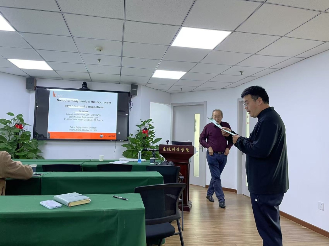 2024年10月16日,日韩av 邀请法国里昂高师Wei Dong(董玮)研究员进行了题为“Nanothermodynamics: History, recent advances and perspectives”的学术报告。Wei Dong研究员在统计物理、液体理论(受限液体)、表面化学动力学、非均相催化、多孔介质等研究方面有着深厚的科研积累。近期在小体系(纳米尺度)热力学和表面张力的理论研究中取得了重要成果。