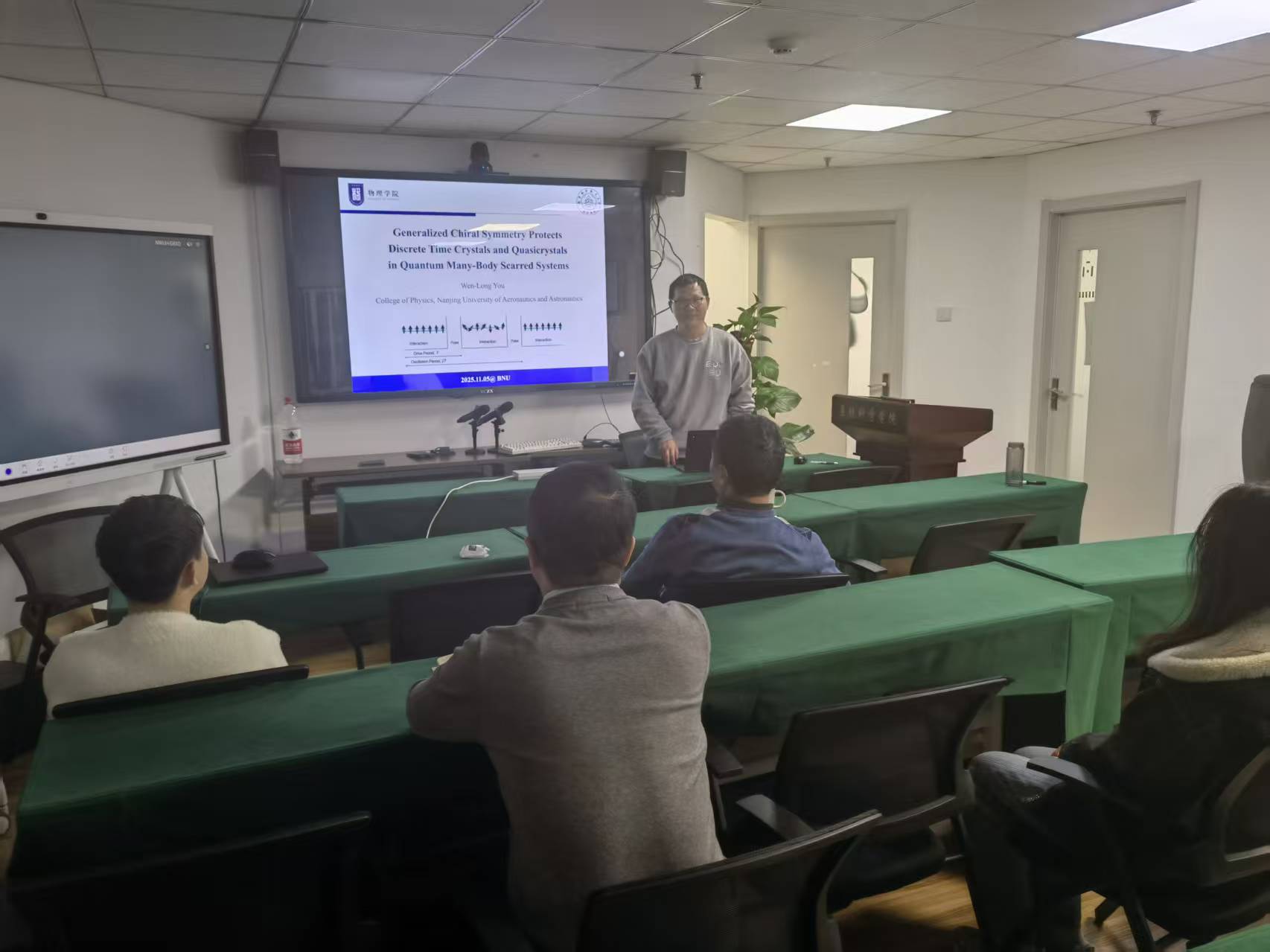 近日,复杂量子系统研究专家南京航空航天大学物理学院尤文龙研究员及其团队优秀博士研究生张文乙同学应邀来访日韩av,围绕量子复杂系统领域开展学术交流,并于2025年11月5日上午和下午为全院师生作了专题讲座。
