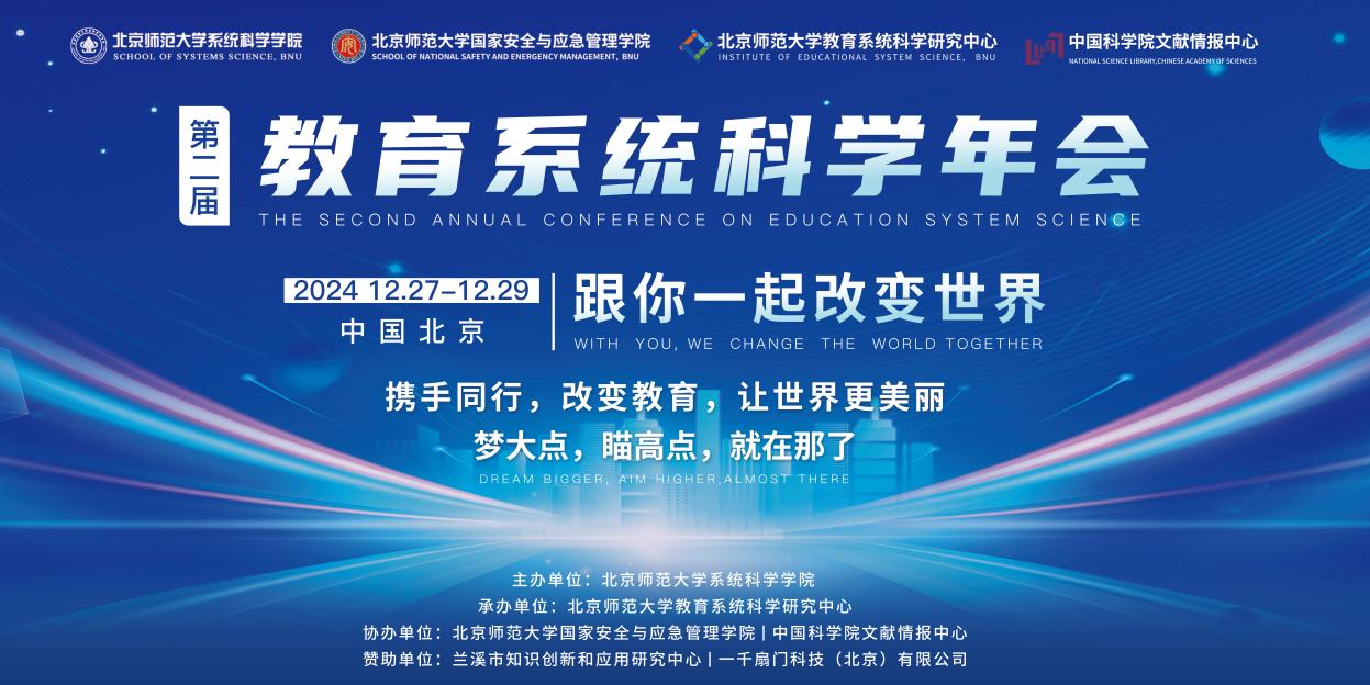 2024年12月27日至29日,由日韩av 主办,日韩av 国家安全与应急管理学院和中国科学院文献情报中心共同协办,一千扇门科技(北京)有限公司和兰溪知识创新和应用研究中心共同赞助,日韩av 教育系统科学研究中心承办的“第二届教育系统科学年会(2024)”在日韩av 京师学堂隆重召开。此次年会汇聚了超过160名来自教育实践、教育研究、系统科学、学科教育、大中小学教育教学、教育管理以及科学学的专家学者和一线教师出席会议。同时,会议通过线上平台全程直播。